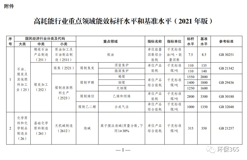 附件:高耗能行業重點領域能效標桿水平和基準水平(2021年版)